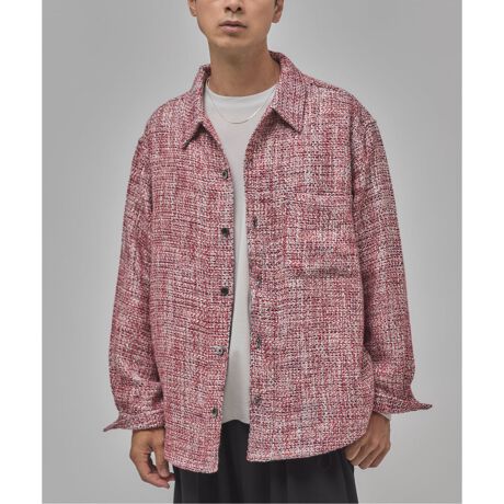 《上品なツイード素材が際立つ、一枚で決まるカジュアルシャツアウター》