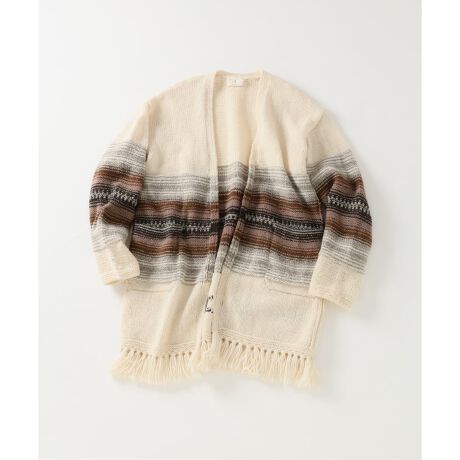 ・オンブレボーダーを表目と裏目で巧みに表現し、裾にはタッセルフリンジを施した、表情豊かなロングカーディガン。
