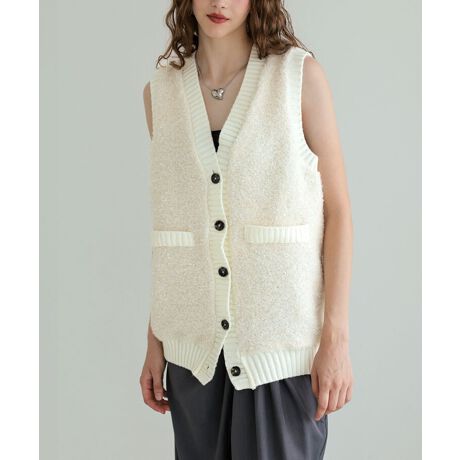 起毛感あるブークレ調の素材と太めのリブがアクセントになり、