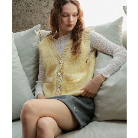 起毛感あるブークレ調の素材と太めのリブがアクセントになり、