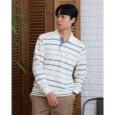 表情のあるボーダー長袖ポロシャツです。