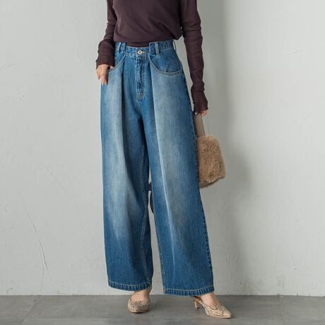 大胆なタックデザインとほんのりカーヴィなラインが穿くだけで旬なムードに格上げしてくれる新しいデニム。