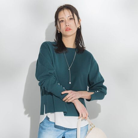 ・袖口には小さなボタンディテールをプラスし、シンプルな中にもさりげない上品さを演出。