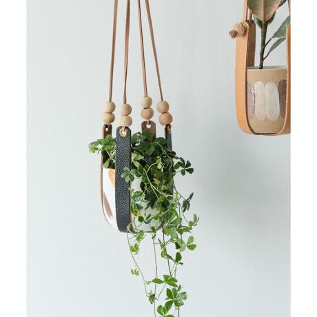 リッチなレザー素材で作られた、浮遊感のあるプランターハンガー。