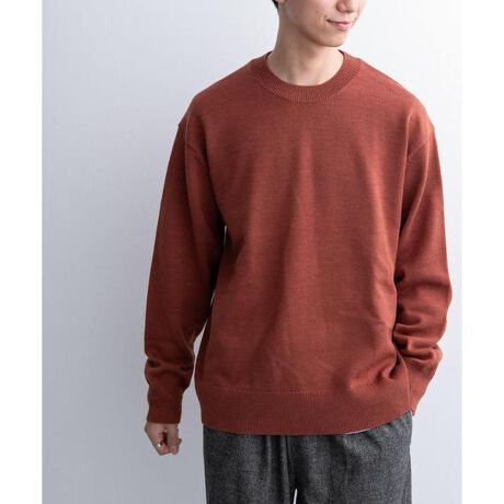 定番で着られるクルーネックニットは、マシンウォッシャブル可能な点が嬉しい一着。