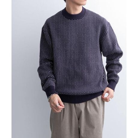 FORK&SPOON バーズアイクルーネックニット