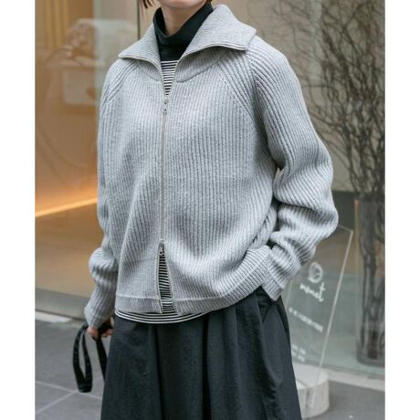 このアイテムはWEBと一部店舗での取り扱いです。手洗い可能な素材を使用したジップ型のニットカーディガンが新登場。