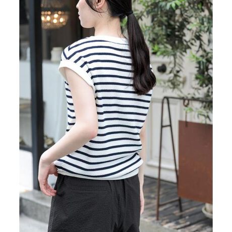 肩に乗るスリーブが腕周りをカバーし、ネックラインをきれいに魅せるボートネックを採用するなど、カジュアルなアイテムながらも女性らしさも兼ね備えています。