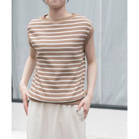 肩に乗るスリーブが腕周りをカバーし、ネックラインをきれいに魅せるボートネックを採用するなど、カジュアルなアイテムながらも女性らしさも兼ね備えています。