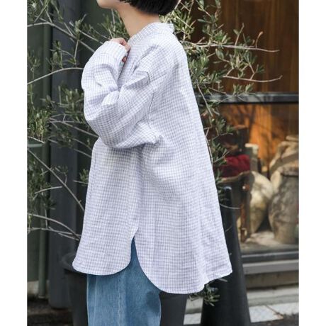 適度にゆるめに設定したサイズ感がラフな印象をプラスし、こなれ感溢れるバンドカラーと長くしすぎない着丈、裾のラウンドヘムを採用。