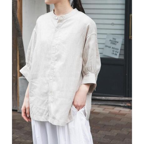 コットン×リネン素材を使用した五分袖のギャザースリーブシャツが登場。
