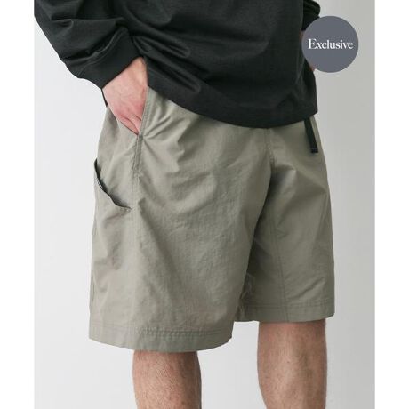 高機能な生地を使用してデザイン性の高いデイリーウエアを提案している"BURLAP OUTFITTER(バーラップアウトフィッター)"に型から別注したナイロンショーツ。
