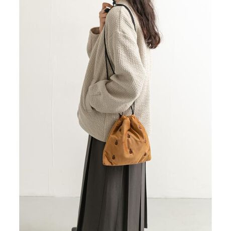 シーズンムード漂うベルベット生地に刺繍が施された巾着バッグ。