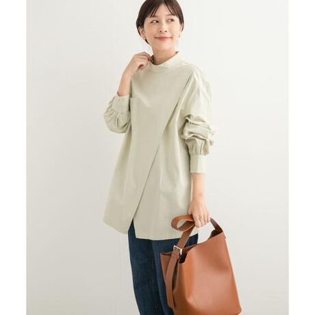 前身頃がクロスになったラップデザインがコーディネートの主役になるチュニックブラウスをご用意しました。