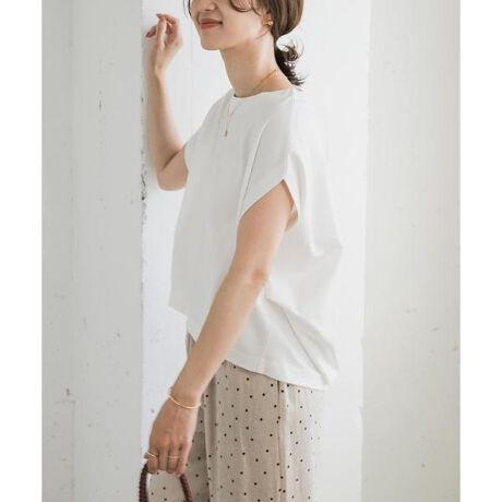 滑らかでキレイ見えする着心地の良いカットソー地を採用し、Tシャツよりもカジュアルダウンしないアイテムです。