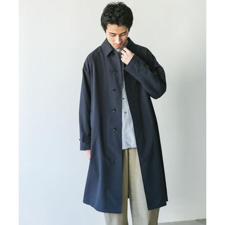 ・ベーシックなステンカラーコート型で、比翼仕立てでスマートな印象に。