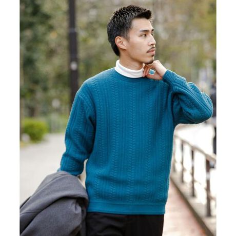 ・「SUPERB WOOL」というチュニジア産のウール100%で仕立てたクルーネック型のケーブルニット。