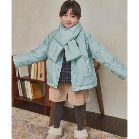 『洗濯可/撥水』マフラー付き中綿ノーカラージャケット(KIDS)