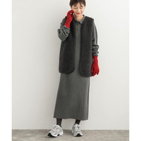 ダブルフェイス編みで程よく肉感のあるポロ風のニットワンピースをご用意。
