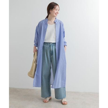ベーシックなデザインながらも、存在感のあるカラーストライプが華やかなシャツワンピース。