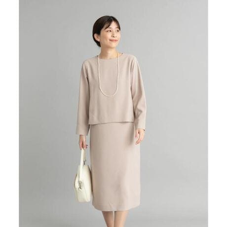 長すぎない着丈は小柄な方にも着ていただきやすく、スカート部分もストレートシルエットなのでワンピースながらも甘さも控えめになっています。