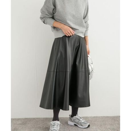 トレンドのフェイクレザー生地を使用したボリューム感のあるフレアスカートをご用意しました。