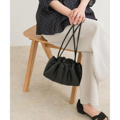 柔らかいフェイクレザーでお作りした2WAY仕様の巾着バッグ。