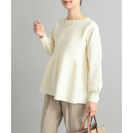 特殊な編み方で出来るペプラムコクーンシルエットが華やかな印象のニットプルオーバー。