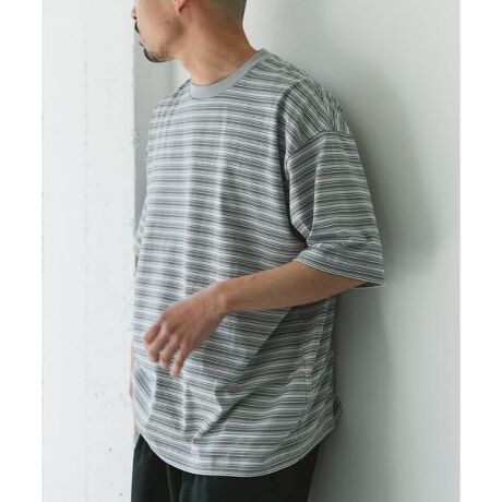 柔らかな印象になるメランジ糸を編み込んだボーダーTシャツ。