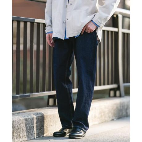 ビンテージのデニムベースに股上を少し深く調整し、裾にかけてゆるやかにテーパードがかかるトレンド感のあるシルエットにアップデートした一本。