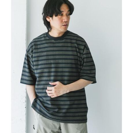 ドロップショルダーでゆとりのあるシルエットですが、すっきりとした着丈で野暮ったくならない一着です。