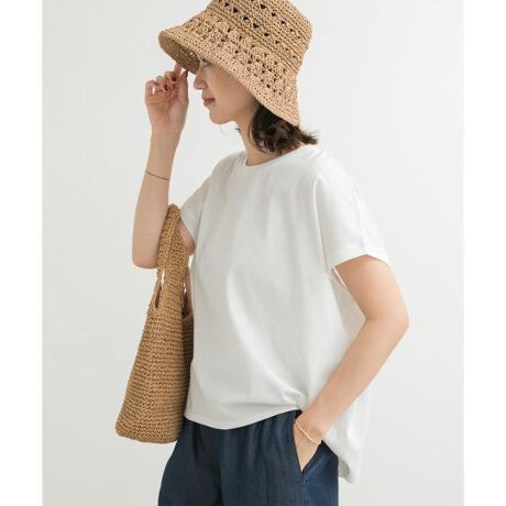気温の高い時期に嬉しい、汗染み防止素材を使用したドルマンTシャツ。