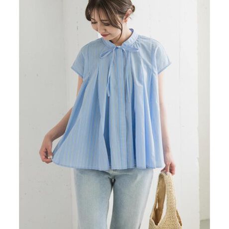 ストライプリボンフレアフレンチブラウス