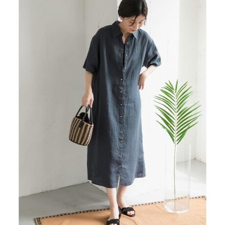 夏の必須素材・リネンで仕立てたベーシックなシャツワンピースを半袖の仕様にしてご用意しました。