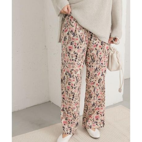 『イージーケア/接触冷感』フラワープリントイージーパンツ