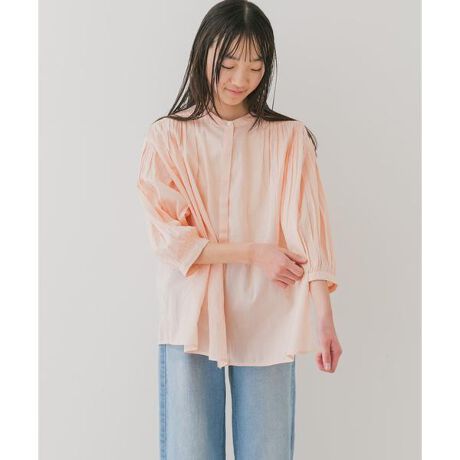 軽く清涼感のあるコットンボイル生地を使用したブラウスは、全体的にたっぷりと入ったタックやギャザーが程よいボリュームを出してくれるアイテム。