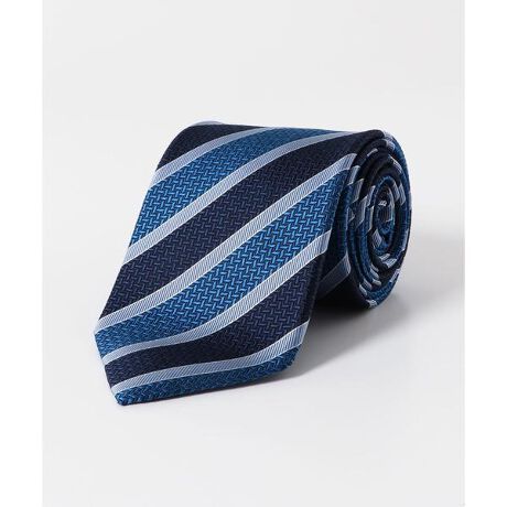 ベーシックな配色のストライプネクタイはコーディネートに取り入れやすく、Vゾーンの印象も引き締まります。