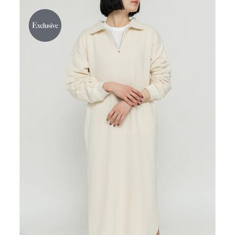 柔らかい肌触りの甘編みスウェットを使用したハーフジップワンピース。