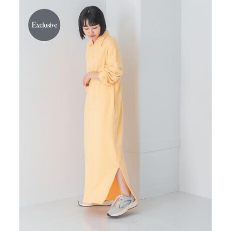 柔らかい肌触りの甘編みスウェットを使用したハーフジップワンピース。