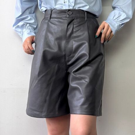 光沢感のある合皮が高見えするハーフパンツ。