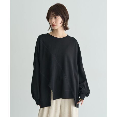 斜めの切り替えや裾のアシンメトリーラインが他にないデザインです。