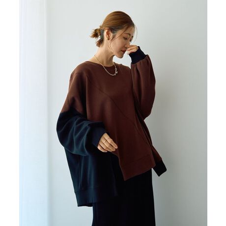 斜めの切り替えや裾のアシンメトリーラインが他にないデザインです。
