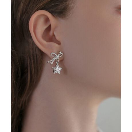 繊細なリボンモチーフに、輝くスターが揺れる大人可愛いデザイン