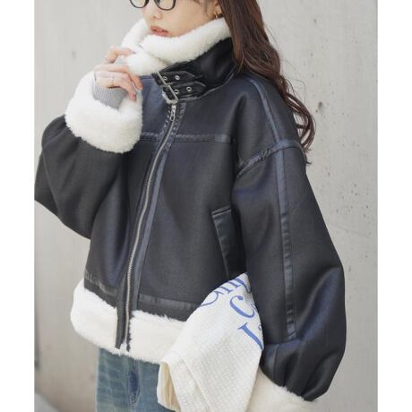 毎年好評のボンバージャケットが今年も登場!スウェードは昨年と同カラーです。フェイクレザー見えの新色はスウェードより少しはハリ感があるため、タック分量を調整してすっきり見えるサイジングにしています。やわらかい肌ざわりのジャスト丈のボンバージャケット。配色のボアもボリューム感があり暖かい万能アウターです。少しゆったりとしたサイズ感はメンズライクですが、袖にパフを入れているのでフェミニンなディテールに。衿はスタンドになる2wayデザインです。身頃の切り替え部分にレザーを叩きつけているのもさりげないポイント。メンズライクなサイズ感なので、スカートなどと合わせて甘辛IXなコーデがおすすめです。カジュアルにスラックスやデニムなどとも合わせやすいので一枚持っていると着回し抜群です。※モデルの着用画像の場合、光の当たり具合により、実際の色味と異なって見えることがございます。色味は、商品単体の画像をご参照ください。