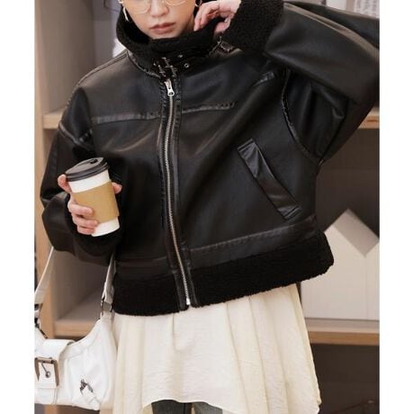 毎年好評のボンバージャケットが今年も登場!スウェードは昨年と同カラーです。フェイクレザー見えの新色はスウェードより少しはハリ感があるため、タック分量を調整してすっきり見えるサイジングにしています。やわらかい肌ざわりのジャスト丈のボンバージャケット。配色のボアもボリューム感があり暖かい万能アウターです。少しゆったりとしたサイズ感はメンズライクですが、袖にパフを入れているのでフェミニンなディテールに。衿はスタンドになる2wayデザインです。身頃の切り替え部分にレザーを叩きつけているのもさりげないポイント。メンズライクなサイズ感なので、スカートなどと合わせて甘辛IXなコーデがおすすめです。カジュアルにスラックスやデニムなどとも合わせやすいので一枚持っていると着回し抜群です。※モデルの着用画像の場合、光の当たり具合により、実際の色味と異なって見えることがございます。色味は、商品単体の画像をご参照ください。