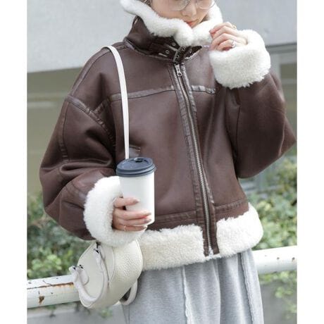 毎年好評のボンバージャケットが今年も登場!スウェードは昨年と同カラーです。フェイクレザー見えの新色はスウェードより少しはハリ感があるため、タック分量を調整してすっきり見えるサイジングにしています。やわらかい肌ざわりのジャスト丈のボンバージャケット。配色のボアもボリューム感があり暖かい万能アウターです。少しゆったりとしたサイズ感はメンズライクですが、袖にパフを入れているのでフェミニンなディテールに。衿はスタンドになる2wayデザインです。身頃の切り替え部分にレザーを叩きつけているのもさりげないポイント。メンズライクなサイズ感なので、スカートなどと合わせて甘辛IXなコーデがおすすめです。カジュアルにスラックスやデニムなどとも合わせやすいので一枚持っていると着回し抜群です。※モデルの着用画像の場合、光の当たり具合により、実際の色味と異なって見えることがございます。色味は、商品単体の画像をご参照ください。