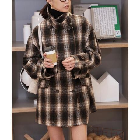 毎年好評!FREE'SMARTオリジナル生地で仕立てたオーバーサイズのPコート。襟ラペルを大きめにし、トラッドなアイテムの中にリラックス感を加えたデザイン。襟ぐりは釦を留めてスタンドネックに、開けてPコートとしても着られる2way仕様です。ミドル丈でややテントラインに広がるオーバーサイズのシルエット。太めにとったステッチワークと大きめの釦がポイント。ミニスカートやショートパンツと着丈を揃えるように着用し、ロングブーツを履くと、スタイルアップしたスタイルに見せてくれます。デニム合わせでカジュアルスタイルもおススメです。「ブラック無地」ジャージ素材をフェルト化して織り上げ、肉感と打ち込みの強さが特徴。「ガンクラブチェック」さらにビーバー仕上げを入れ、ぬくもりのある目面でニュアンス感があります。「大きめのグレンチェック」今季注目のブラウンミックスカラーで、ざっくりと太番手の糸で織りあげた表情ある糸です。どの色も毛羽立ちが少なく、保温性にも優れています。※モデルの着用画像の場合、光の当たり具合により、実際の色味と異なって見えることがございます。色味は、商品単体の画像をご参照ください。