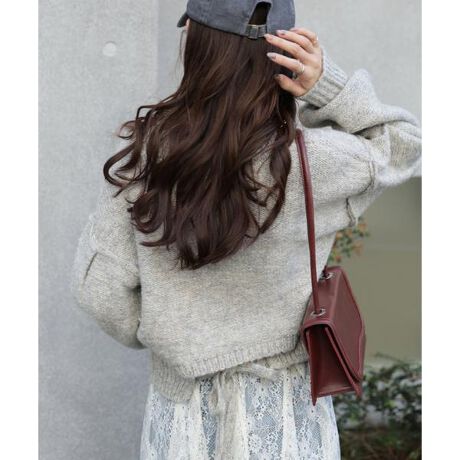 昨年ご好評いただいたバックリボンディテールニットが今年も登場!新色ネイビーが仲間いり。袖のボリュームがキレイに出るよう袖山にタックを入れて、立体的なシルエットに仕上げています。クロップド丈の後ろにリボンディテールを施したバックシャンデザイン。今季はトレンドのスウェードミニスカートを合わせると、ヘルシーな着こなしが楽しめます。※モデルの着用画像の場合、光の当たり具合により、実際の色味と異なって見えることがございます。色味は、商品単体の画像をご参照ください。