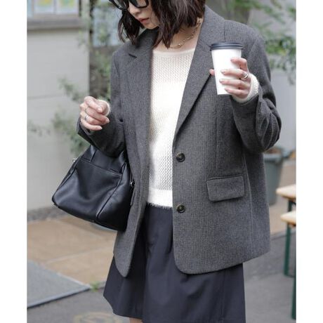 程よいオーバーサイズがこなれた雰囲気で着られるシングルジャケット。袖口は本開きで、一つボタンでアクセントをつけています。オーバーサイズなので中に着込めるのも◎。軽いアウター感覚でもお使いいただけます。ジャケットのインにフリルやボウタイのブラウス、またニットやスウェットなども。ボトムスにフリルスカートを合わせてレディライクに、スウェットパンツやデニムと合わせてカジュアルにもおすすめです。クラシックな印象のウール混先染めシリーズです。小柄で奥行きのある先染めガンクラブチェック3色と、ブラウンベースに多色使いがあたたかみのあるヘリンボーン生地1色を揃えています。※モデルの着用画像の場合、光の当たり具合により、実際の色味と異なって見えることがございます。色味は、商品単体の画像をご参照ください。