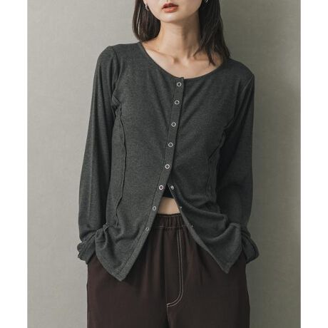 柔らかい細ピッチのリブ素材が心地よいカーディガンです。計算されたパネル切り替えが、着るだけでスッキリとした印象に見せてくれます。